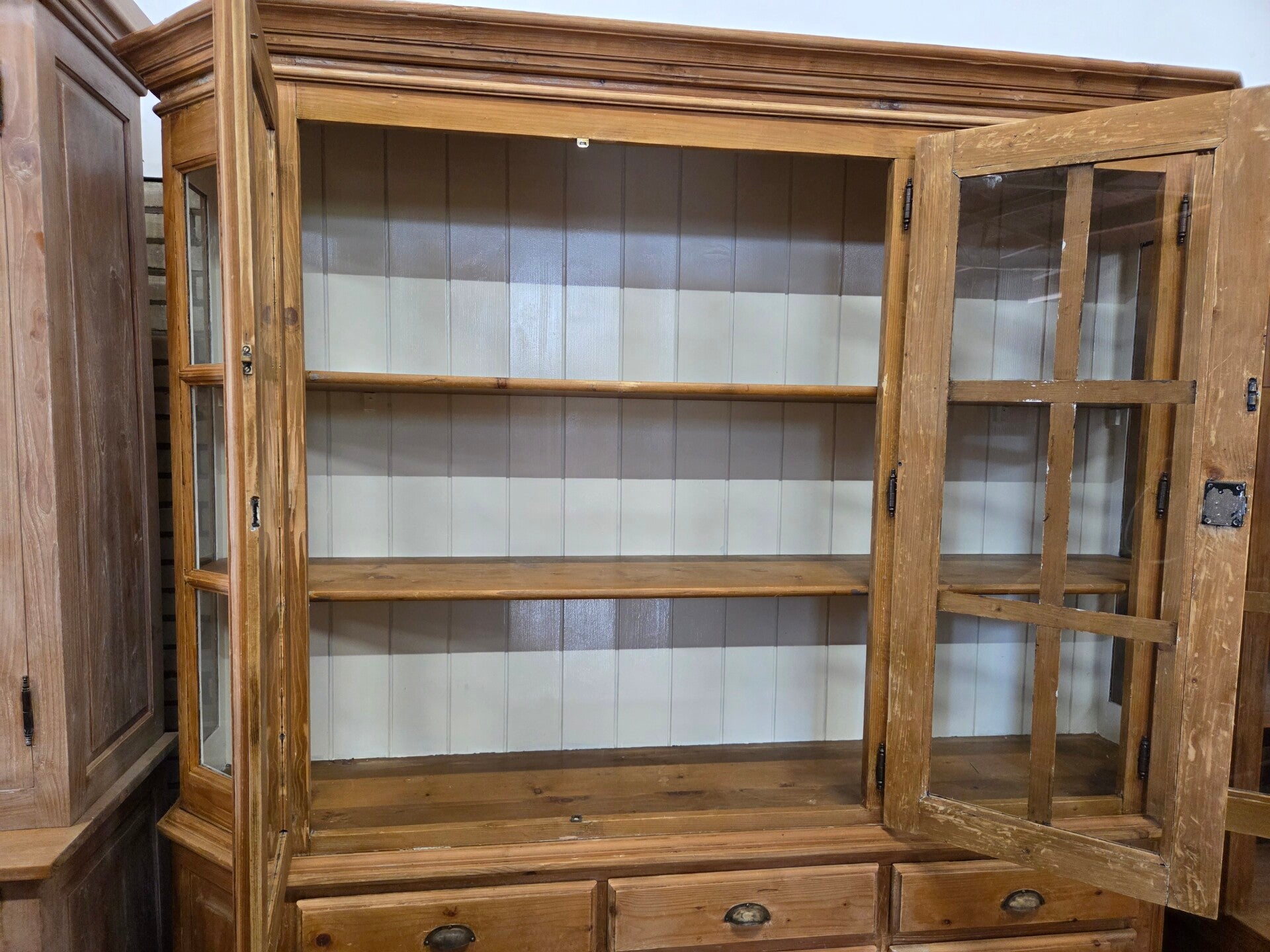 Prachtige landelijke antieke grenen buffetkast / vitrinekast / boekenkast